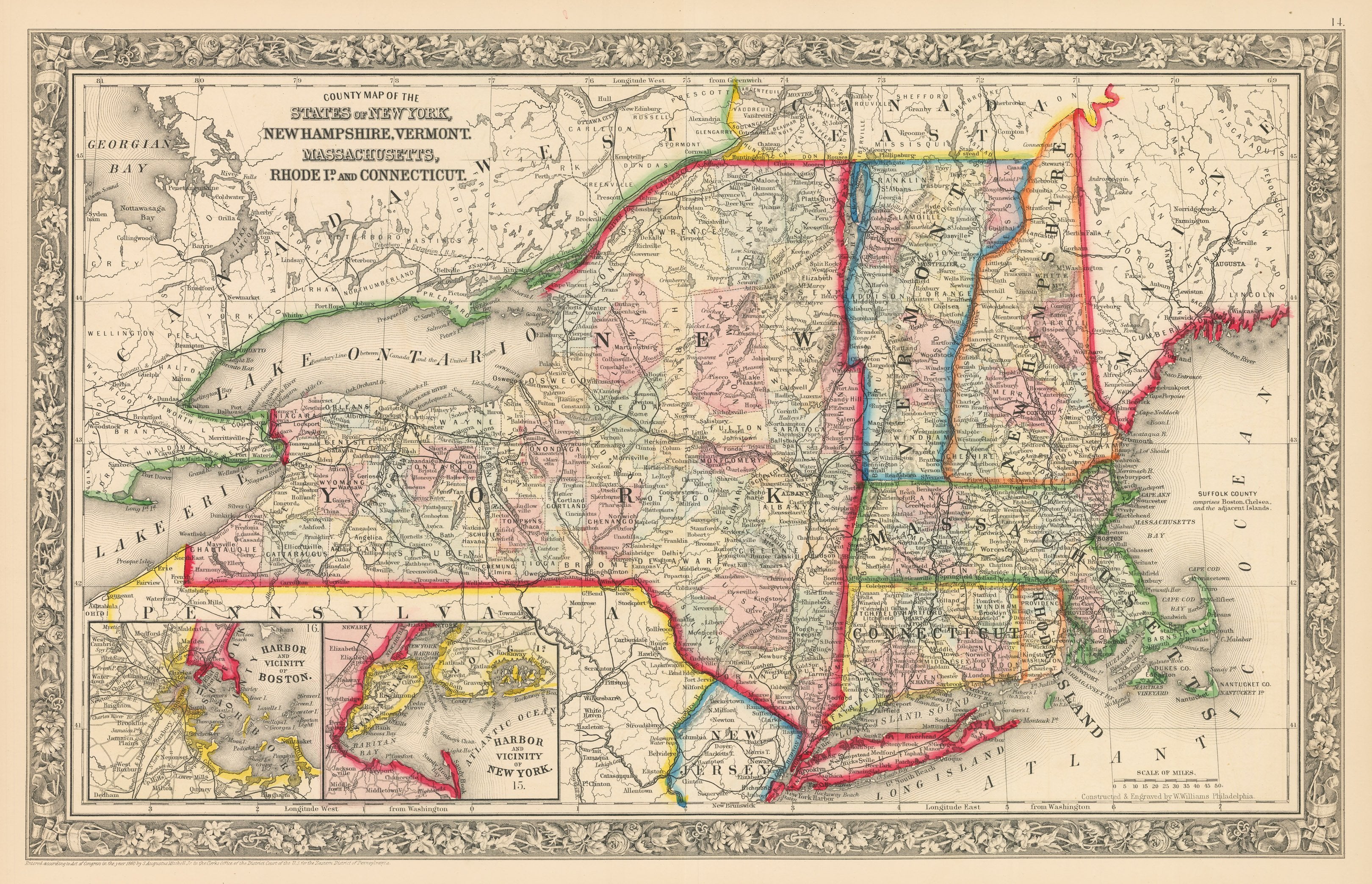 Mitchell Map of New York, Massachusetts, Connecticut, Rhode